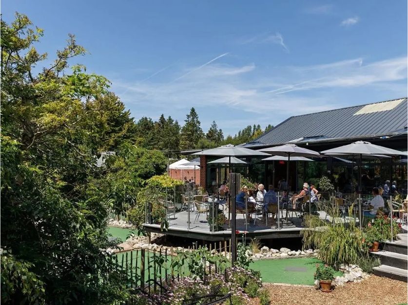Camping and touring enthusiasts are catered for across eight clearly defined areas: open grassy lawns ideal for families, secluded woodland tent pitches and “all-weather” hardstanding serviced pitches with electricity, water and drainage. On site, comprehensive facilities abound. A modern reception and BASECAMP complex houses a café/bar/restaurant serving everything from full English breakfasts to stonebaked pizzas, plus a shop for essentials. For recreation there’s an 18-hole mini-golf course, cycle hire, tennis courts, an adventure playground with zipwires and climbing wall, and highly rated sanitary facilities.